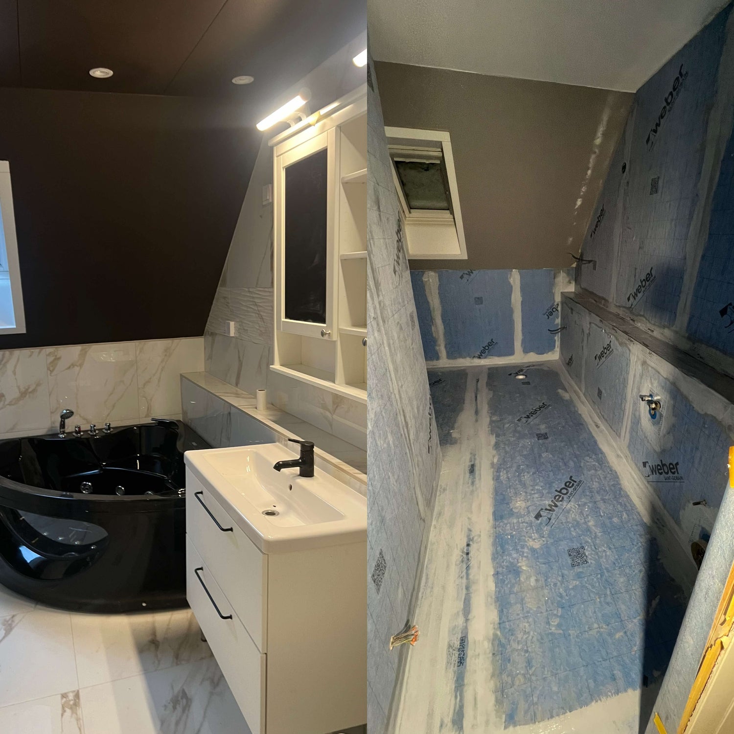 • Plattsättning: Precisionsarbete med kakel och klinker för ett stilrent och hållbart badrum.