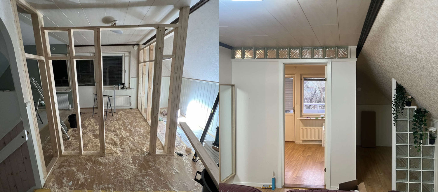 Här delar vi med oss av ett spännande ombyggnadsprojekt där vi hittade en smart lösning för väggen genom att integrera glasblock. Detta släpper in naturligt ljus och ger rummet en luftig och modern känsla.